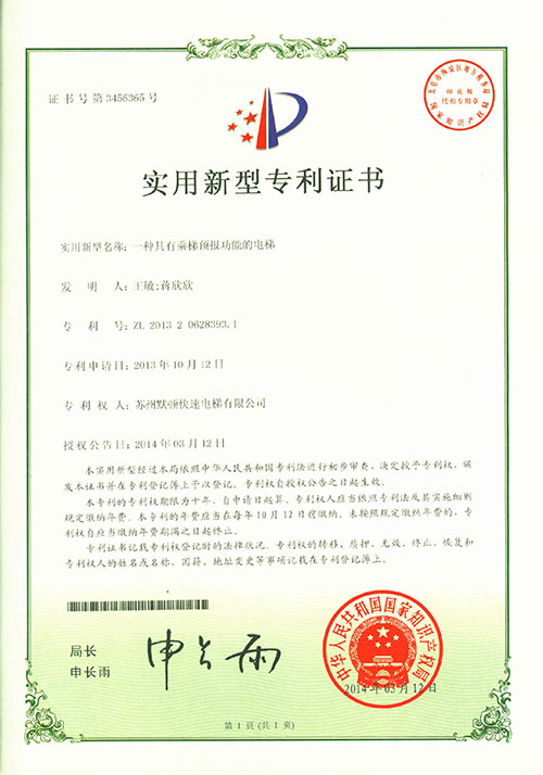 实用新型专利证书